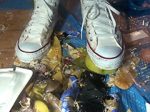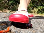 さらに汚れていく清楚な白ブーツ。後ろ手に可愛いポーズをとりながら踏みつぶしていくみくちゃん。左右にじわじわ動かしてバキバキと潰していったり、ペダルの上に無理やり乗せてペダルと化して踏まれていったり。3匹を通路に並べて小走りに1匹ずつ踏みつぶしたり。カメラは超接写で写っているけれど、みくちゃんには足元がどうなっているかははっきり見えていないのでやりたい放題。最後には~十匹の残骸をまとめて踏み踏み。こんなに可愛いのに足元とのギャップがたまりません。