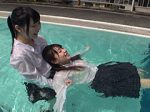 上着って水を物凄くすうの。だけどコートのまま水に入った事のある私達には楽勝。でも長時間泳ぎの練習をしてると流石に疲れが。上着を脱いでからも厳しくも優しい練習。バタ足の練習など見応え満載!