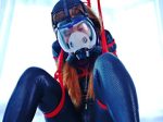 マオはすっかりFSS流のプレイに満足しているようで、既にキャットスーツを着込んだ段階で目がイッっちゃってる気がします。そんなマオの口元に、キキはテープを貼り付けていきます。何重にも貼り付けた後は、手足を壁に縛り付け自由を奪います。この時点でマオのキャットスーツには唾液の線が…。そう、彼女はもはや責められる前から興奮が高まり、陶酔しきっているのです。そんな彼女をキキは淡々と電マで…。